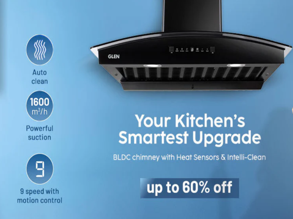 Auto Clean Curved Glass Filter-less Kitchen Chimney, Motion Sensor control with Digital Display By Glen